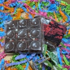 Step into the shadows with our limited edition Chocolate Things bar. We’ve taken rich, intense 71% dark chocolate and crafted it around a wickedly inviting, blood-red caramel centre. This deep cocoa shell gives way to a smooth, sweet caramel filling, creating a dramatic contrast in both flavour and appearance. Finished with a touch of shimmer, this bar is a deliciously eerie tribute to the supernatural. Indulge your darker cravings!