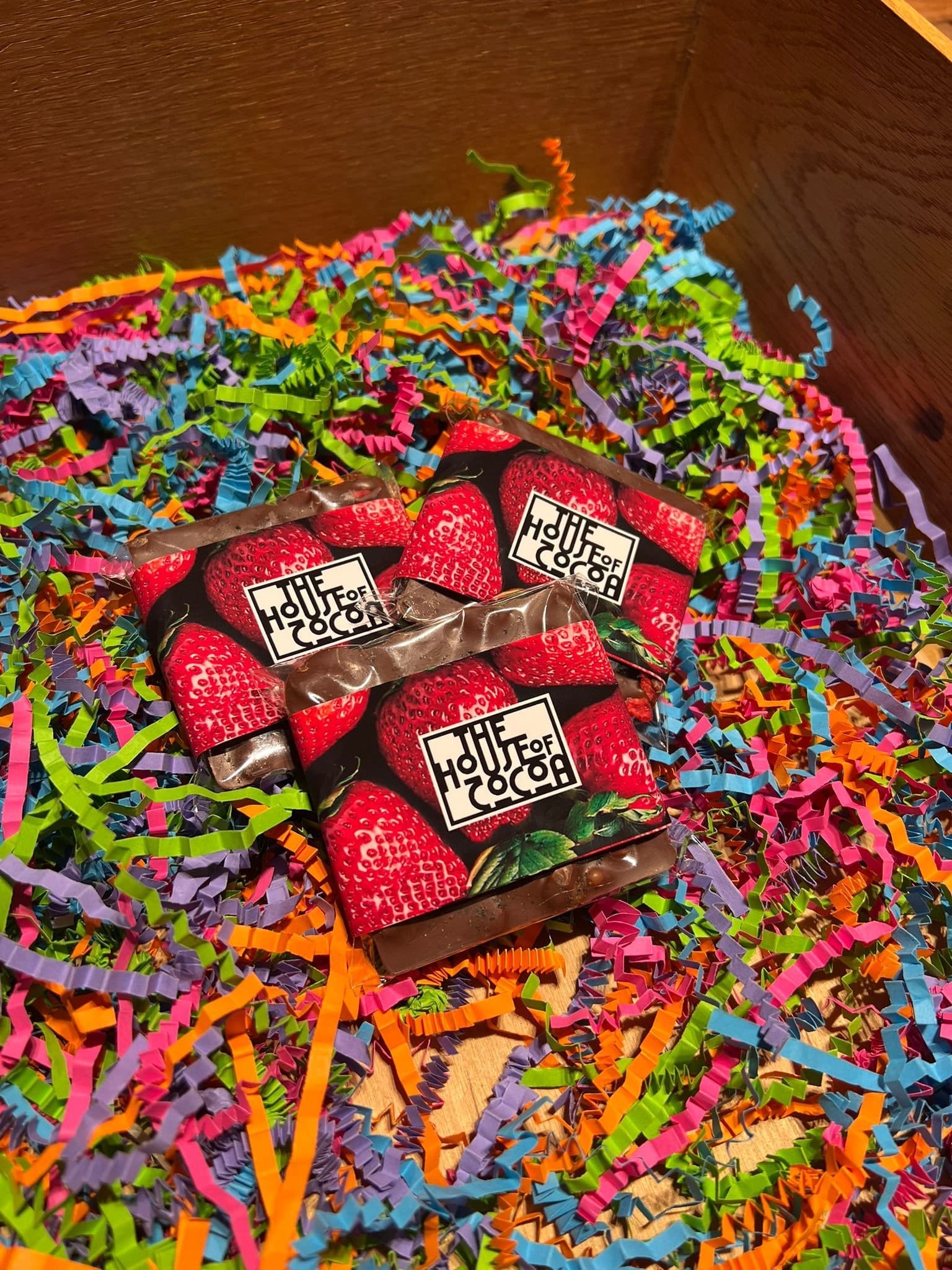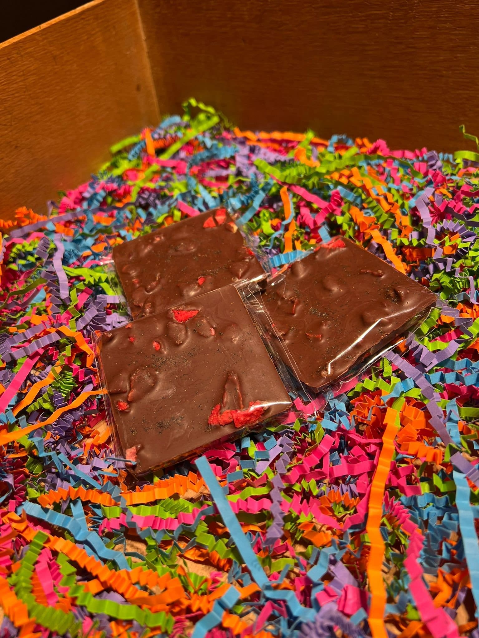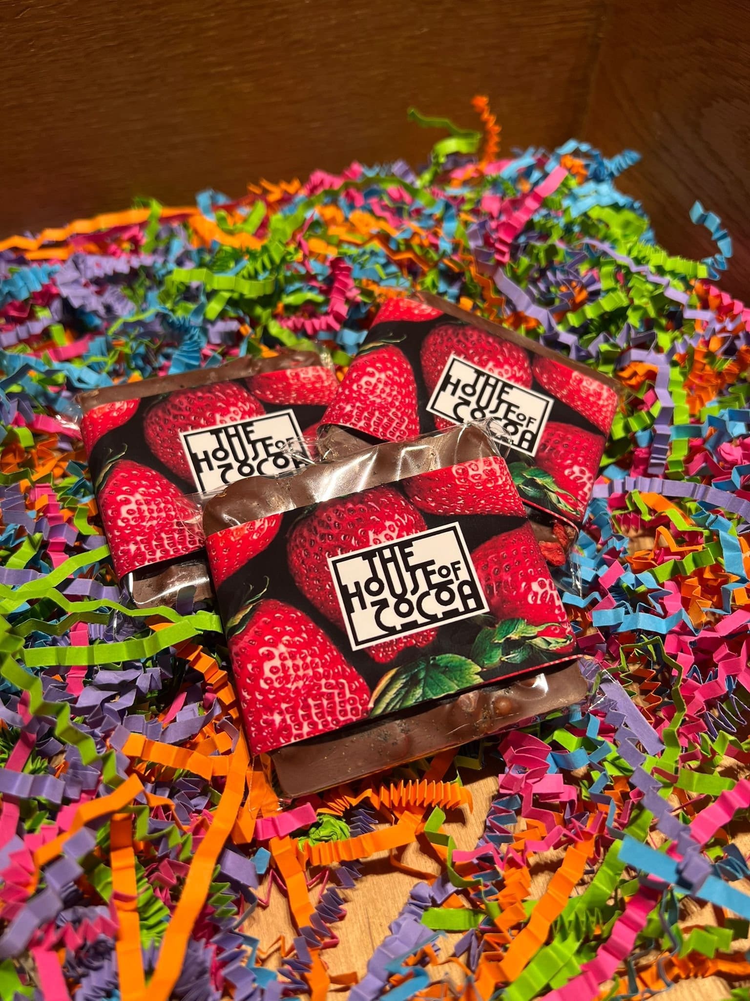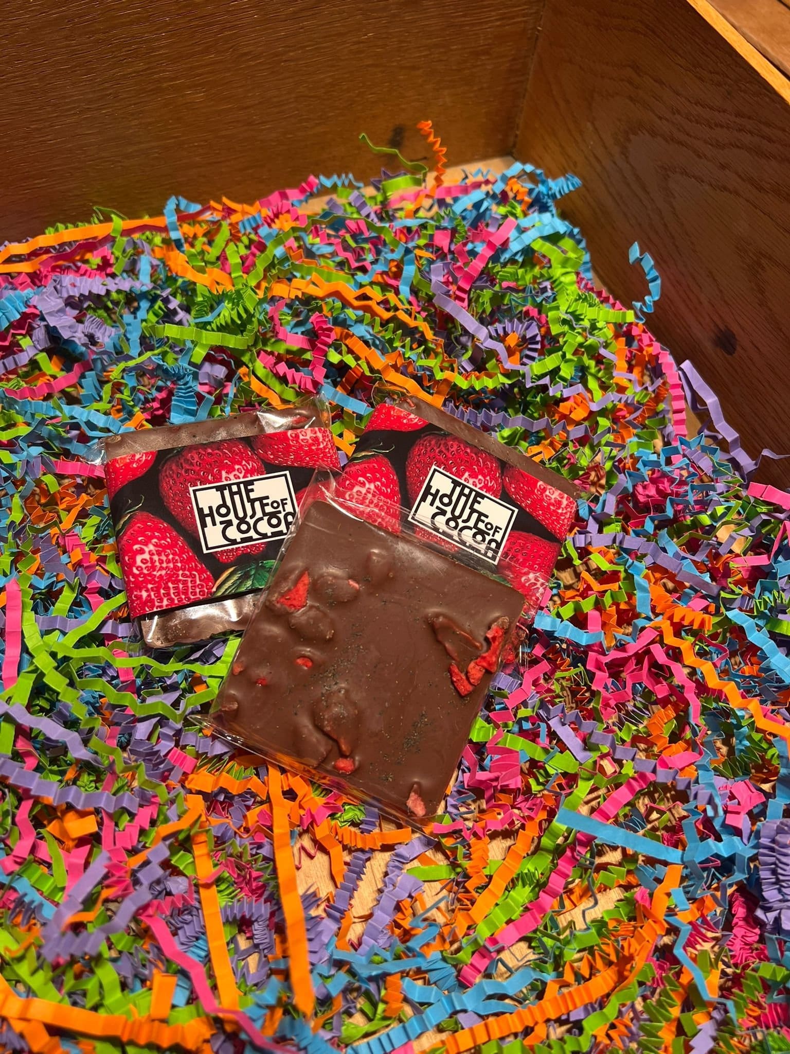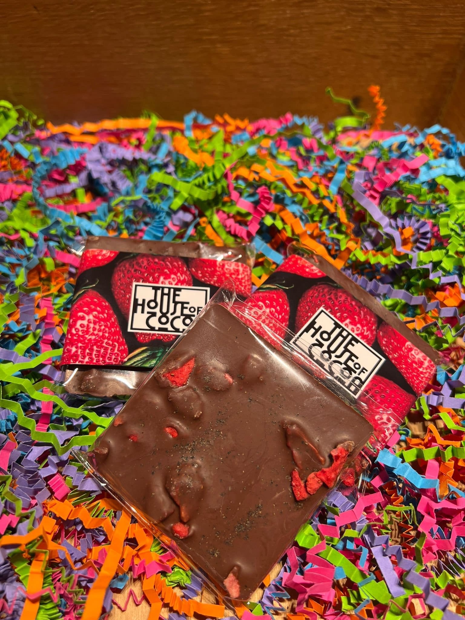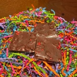 Ingredients: Milk Chocolate (45%) (sugar, cocoa butter, cocoa mass, whole milk powder, natural vanilla), Ground black pepper, freeze dried strawberry slices.