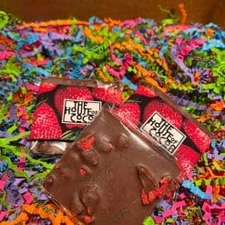 A unique combination of creamy Belgian milk chocolate, sweet freeze-dried strawberry slices, and a subtle kick of ground black pepper. This sophisticated blend of flavours offers an exciting taste experience for adventurous chocolate lovers.