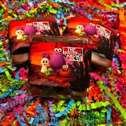 Meet our Milk Chocolate Bar with Worms, Eyes and sprinkles, an edible tribute to the hilarious horrors beneath the castle. This creamy, luxurious milk chocolate slab is the perfect canvas for a truly monstrous gathering of toppings. Each bar features a wonderfully wiggly gummy worm, glaring, googly edible eyes, and a generous shower of bright, playful sprinkles.